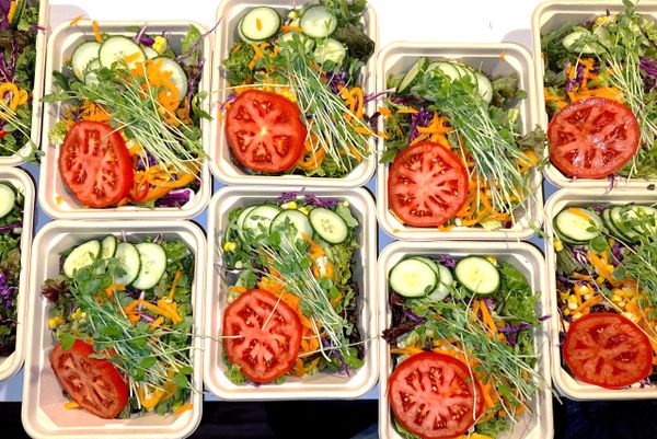 Chef Salad with Turkey and Salami and a whole bunch of fresh veggies, Parmesan vinaigrette