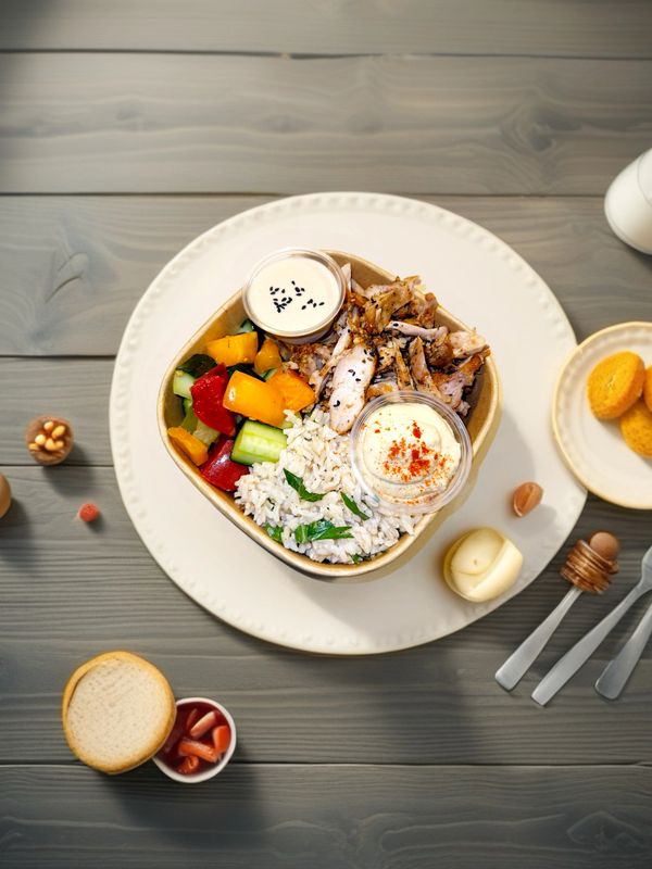 Falafel, cucumber tomato,hummus, baba, tahini, homemade pita and some pickle