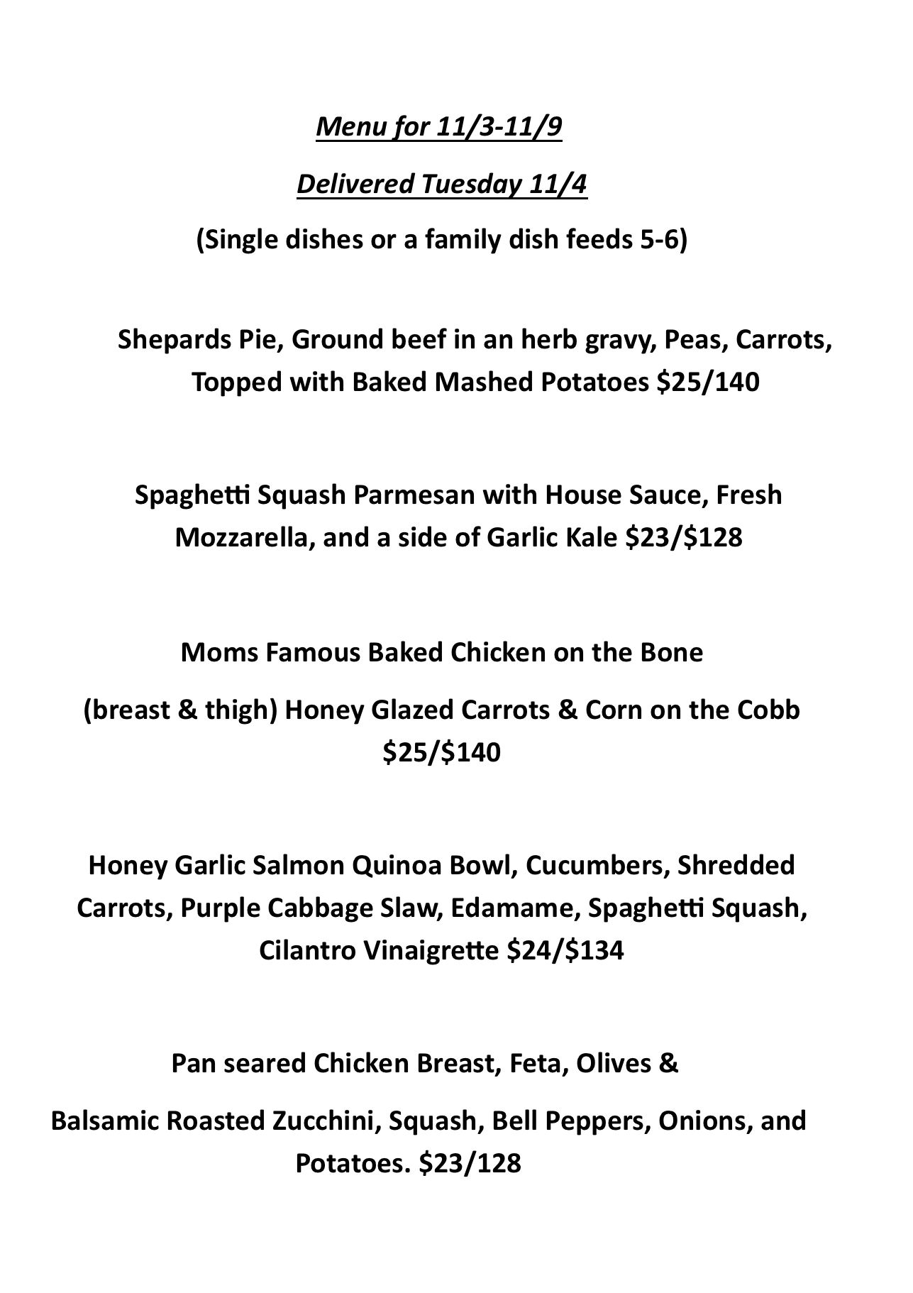 Please order by Sunday at 9:00 pm. All  orders will be delivered on Tuesday .